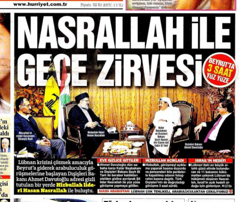 Πάντως η φωτογραφία της συνάντησης του υπουργού Εξωτερικών της Τουρκίας με τον ηγέτη της Χεζμπολαχ στον Λιβανο ηδη δημοσιευθηκε σε ολες τις τουρκικές εφημερίδες και θεωρείται σίγουρη η έντονη αντίδραση του Ισραήλ.