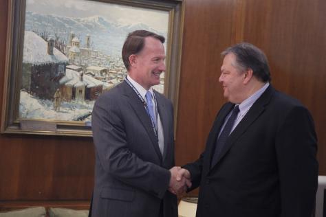 Δηλώνει ότι ελπίζει πως η Χίλαρυ Κλίντον θα έλθει ως το τέλος του έτους στην Ελλάδα, δεν αποκλείει να έλθει ο αντιπρόεδρος των ΗΠΑ στην Αθήνα για τους Special Olympics και τονίζει ότι οι ΗΠΑ θα είναι από τους πρώτους που θα αναγνωρίσουν την ΠΓΔΜ, με όποιο όνομα συμφωνηθεί ανάμεσα στις δυο πλευρές.