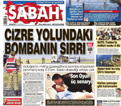 Σύμφωνα με την τουρκική εφημερίδα Sabah ο εκρηκτικός μηχανισμός είχε τοποθετηθεί στον αυτοκινητόδρομο Νουσάιμπιν-Τζίζρε όπου θα περνούσε το όχημα του Ερντογάν. Όμως όσοι τοποθέτησαν τον μηχανισμό, είχαν βρει και τον τρόπο να παρακάμψουν τα μέτρα απενεργοποίησης σημάτων που χρησιμοποιούν οι αρχές ασφαλείας.