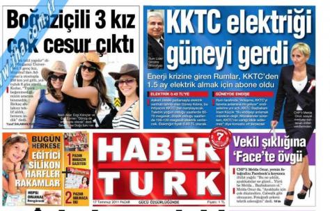 Την απόφαση της Κυπριακής Δημοκρατίας για αγορά ηλεκτρικού ρεύματος από τα Κατεχόμενα, έχει στο πρωτοσέλιδο της η τουρκική εφημερίδα Habertürk.