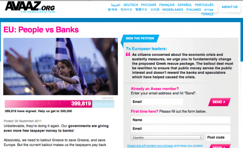 Το Avaaz.org ένα “διδικτυακό κίνημα”,μαζεύει υπογραφές για το εξής κείμενο: