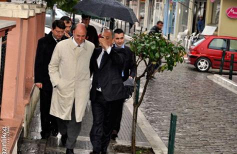 Η φωτογραφία αφιερώνεται στον πρόεδρο του ΠΑΣΟΚ Ευάγγελο Βενιζέλο,ο οποίος απ΄ όλα τα στελέχη που διαθέτει επέλεξε τον κ.Αχμέτ Χατζηοσμάν ως “σκιώδη” υπουργό Μακεδονίας-Θράκης. Στη φωτογραφία ο κ.Χατζηοσμάν ο οποίος μιλά περί “τούρκων” στη Θράκη ,κρατά την ομπρέλα στον Τούρκο πρέσβη κατά τη διάρκεια της επίσκεψής του στη περιοχή. Πίσω τους ο πρώην και ο νυν πρόξενος.