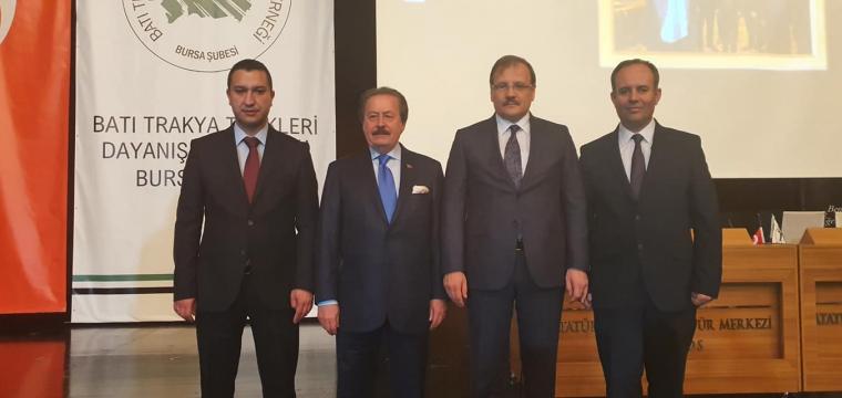 Ο λόγος για τους δημάρχους Αρριανών Ριντβάν Αχμέτ και Ιάσμου Οντέρ Μουμίν, που έδωσαν «παρών» στην ετήσια γενική συνέλευση του παραρτήματος Προύσας του αλυτρωτικού Συλλόγου Αλληλεγγύης Τούρκων Δυτικής Θράκης (ΒΤΤDD), που πραγματοποιήθηκε το Σάββατο στην Προύσα της Τουρκίας.