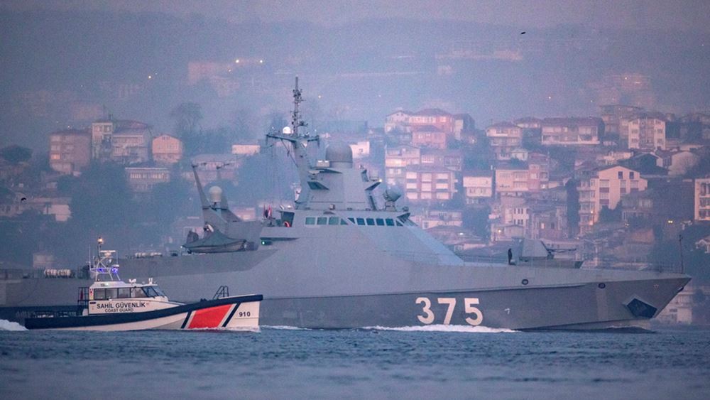 Τη Δευτέρα, η Τουρκία επικαλέστηκε τη Συνθήκη του Μοντρέ του 1936, η οποία σχεδιάστηκε για τη διατήρηση της ειρήνης στη Μαύρη Θάλασσα. Τα Στενά του Βοσπόρου και τα Δαρδανέλια είναι τουρκικά εσωτερικά ύδατα που συνδέουν τη Μαύρη Θάλασσα με το Αιγαίο και τη Μεσόγειο Θάλασσα. Κατά τον 19ο και τον 20ό αιώνα, σημειώθηκαν επανειλημμένα διαμάχες καθώς οι παγκόσμιες δυνάμεις -ιδίως η Τουρκία, η Ρωσία και οι προγονικές τους χώρες και αυτοκρατορίες- επιχείρησαν να περιορίσουν τη διέλευση πολεμικών πλοίων από αυτά τα στρατηγικά σημεία.