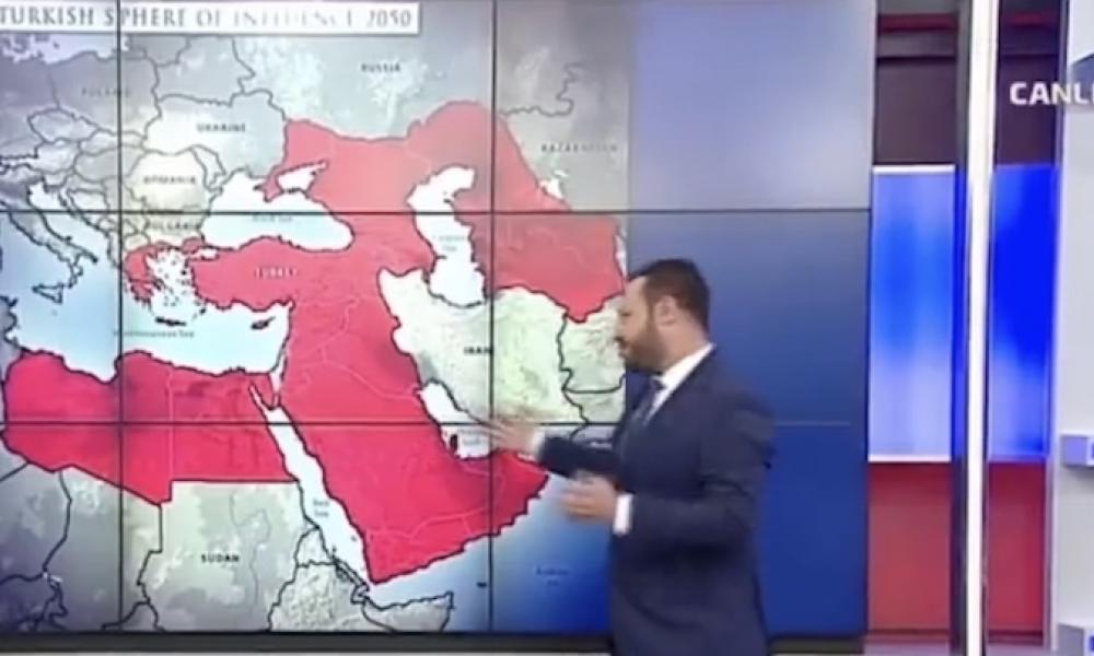 Η τουρκική τηλεόραση δείχνει χάρτη της «τουρκικής σφαίρας» το 2050, συμπεριλαμβανομένων της Αραβίας, της Αιγύπτου, της Λιβύης, της Ελλάδας, του Ισραήλ, του Ιράκ, του Τουρκμενιστάν και άλλων χωρών.