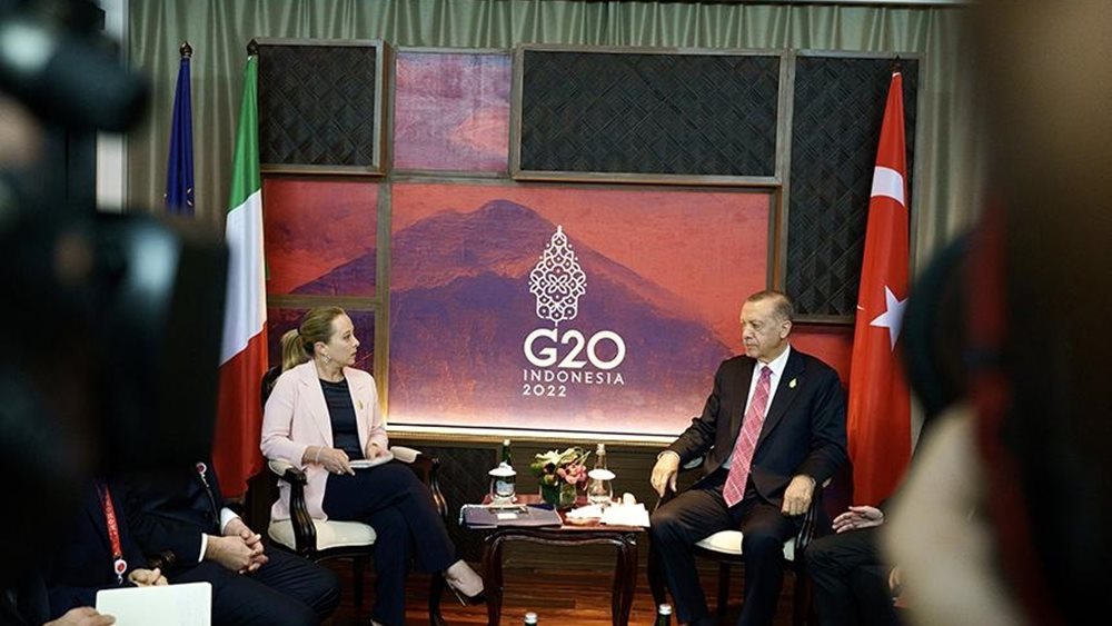 "Είναι μια ειλικρινής κυρία και η πρώτη μας συνάντηση ήταν πολύ σοβαρή και αποφασιστική", είπε ο Ερντογάν τον Νοέμβριο μετά την πρώτη συνάντησή του με τη Μελόνι στο περιθώριο της συνόδου κορυφής των G20 στο Μπαλί της Ινδονησίας. "Η Ιταλία είναι μια χώρα με την οποία θα είμαστε αλληλέγγυοι στην Ευρώπη".