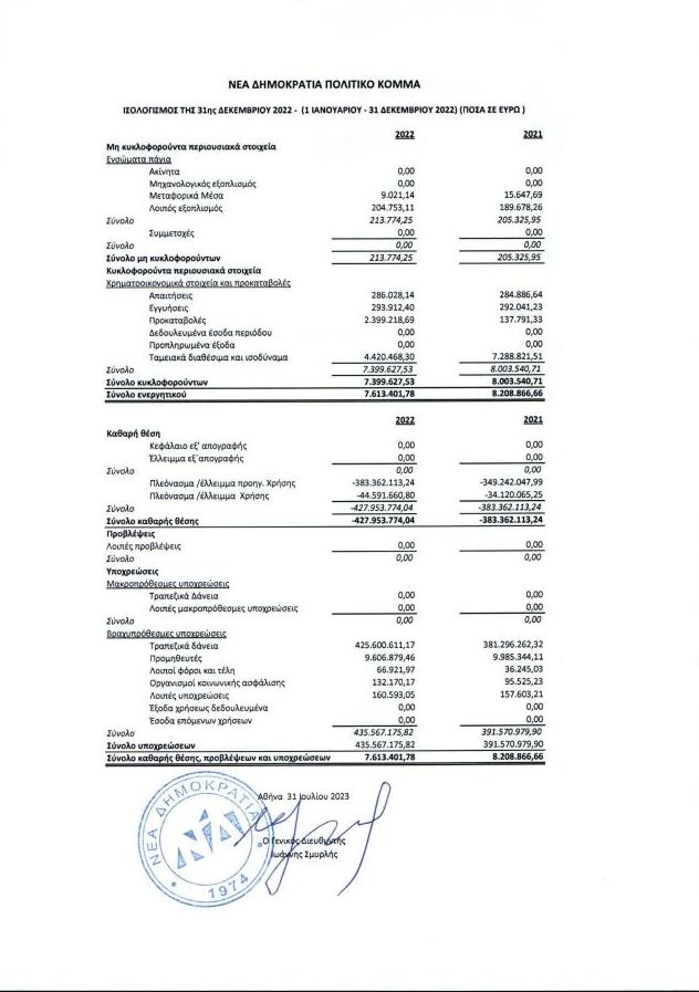 Το 2022 αυξήθηκε ο δανεισμός της ΝΔ κατά 42 εκατ και του ΠΑΣΟΚ 43 εκατ ευρώ;