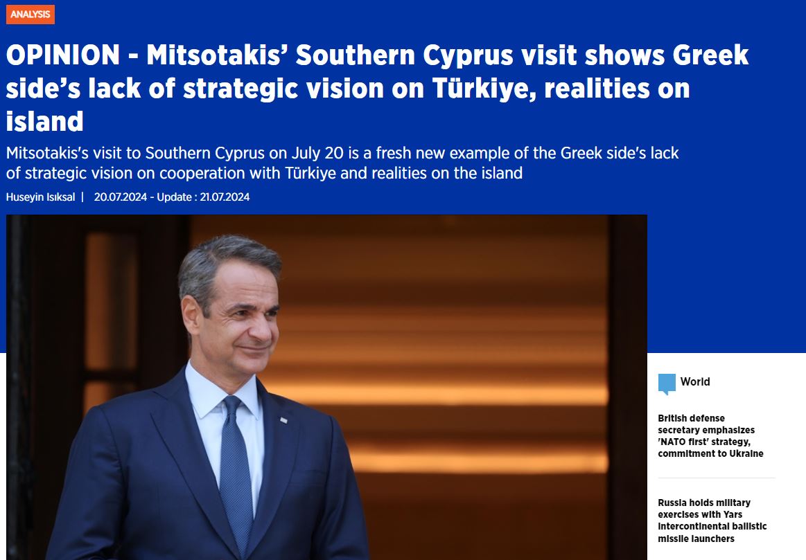 Συνοψίζοντας, ο αρθρογράφος, αναφέρει: «Η επίσκεψη Μητσοτάκη στη Νότια Κύπρο στις 20 Ιουλίου είναι ένα φρέσκο παράδειγμα της έλλειψης στρατηγικού οράματος της ελληνικής πλευράς για τη συνεργασία με την Τουρκία και τις πραγματικότητες στο νησί.