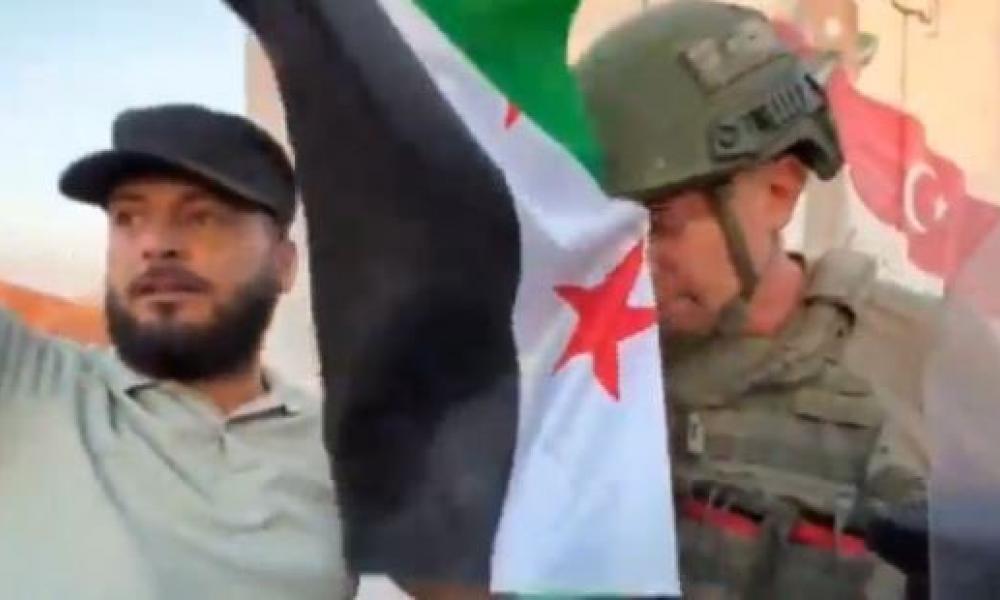 Τούρκος στρατιωτικός σε βίντεο αναγκάστηκε να φιλήσει την σημαία της Συρίας, υπό την απειλή χιλιάδων Σύριων διαδηλωτών που φώναζαν "Η Τουρκία είδε την δύναμη της Συρία”.Χτύπησαν στο ψαχνό οι Τούρκοι στην Βόρεια Συρία για να σωθούν και θα δεχθούν ισχυρά αντίποινα