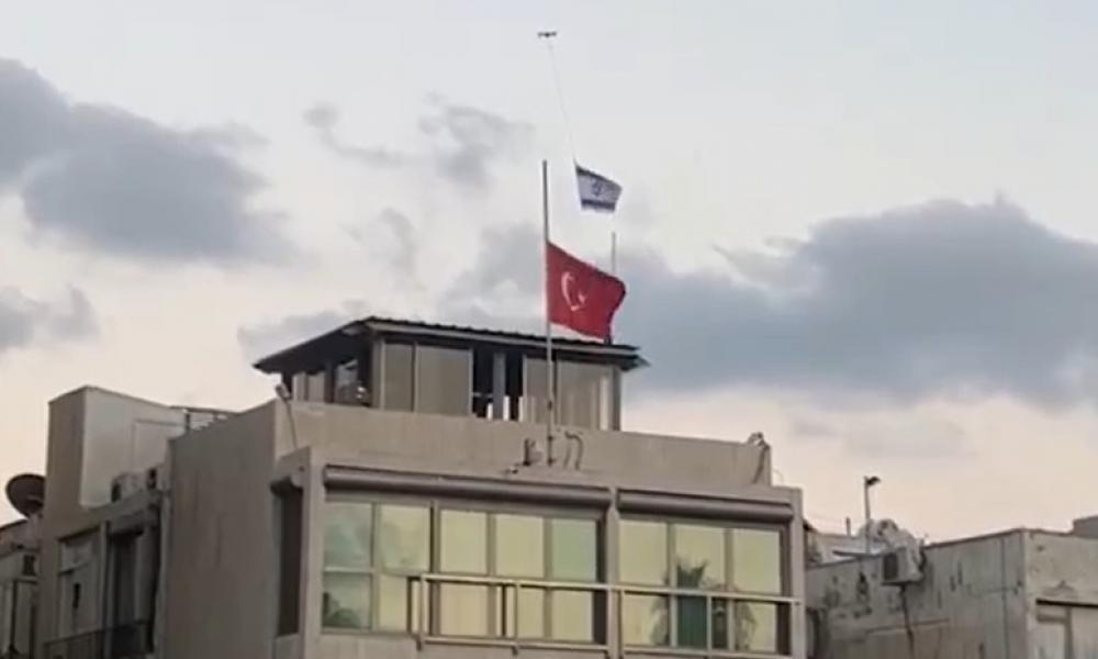 Ένα drone που είχε αναρτημένη μια ισραηλινή σημαία πέταξε πάνω από την πρεσβεία της Τουρκίας στο Τελ Αβίβ, στο σημείο που ήταν μεσίστια η τουρκική σημαία, σε ένδειξη πένθους για τον δολοφονημένο ηγέτη της Χαμάς Ισμαήλ Χανίγια, προκαλώντας οργή στην Άγκυρα, αναφέρει ισραηλινό ΜΜΕ.Ένας κάτοικος στο Ραμάτ Γκαν πέταξε ένα drone με ισραηλινή σημαία πάνω από την πρεσβεία της Τουρκίας στο Τελ Αβίβ την Παρασκευή ως απάντηση στην εκδήλωση θλίψης της των Τούρκων της πρεσβείας για τον δολοφονημένο ηγέτη της τρομοκρατικής οργάνωσης της Χαμάς, προκαλώντας τη διαμαρτυρία του ανακληθέντος Τούρκου πρεσβευτή της χώρας, ανέφεραν εβραϊκά μέσα ενημέρωσης.