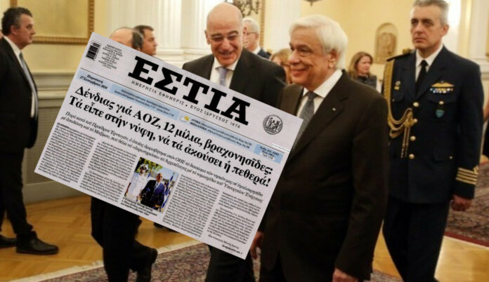 Η ηχηρή παρέμβαση Δένδια, έγινε ακριβώς για τον λόγο που περιγράφει η εφημερίδα Εστία στο σημερινό της πρωτοσέλιδο. Πρακτικά, ο υπουργός εθνικής άμυνας σε τελείως διαφορετικό μήκος κύματος από τον πρωθυπουργό Κυριάκο Μητσοτάκη, προειδοποεί ότι οποιαδήποτε Ελληνική υποχώρηση από τα αυστηρά πλαίσια που θέτει το διεθνές δίκαιο, το δίκαιο της θάλασσας και το πρωτογενές ευρωπαϊκό δίκαιο, συνιστά εθνική μειοδοσία που θα έχει ολέθριες συνέπειες όχι μόνο για την πατρίδα, αλλά και για τους εμπνευστές της.