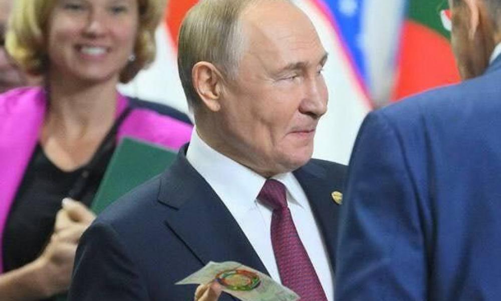 Μάλιστα στην σύνοδο κορυφής στο Καζάν, στον Πούτιν έδειξαν ένα συμβολικό «χαρτονόμισμα BRICS»
