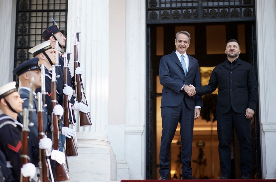 Ο διεφθαρμένος αρχηγός του ουκρανικού κράτους είχε διαδοχικές συναντήσεις με τον πρόεδρο της Δημοκρατίας Κωνσταντίνο Τασούλα, τον πρωθυπουργό Κυριάκο Μητσοτάκη και τον πρόεδρο της Βουλής Νικήτα Κακλαμάνη.